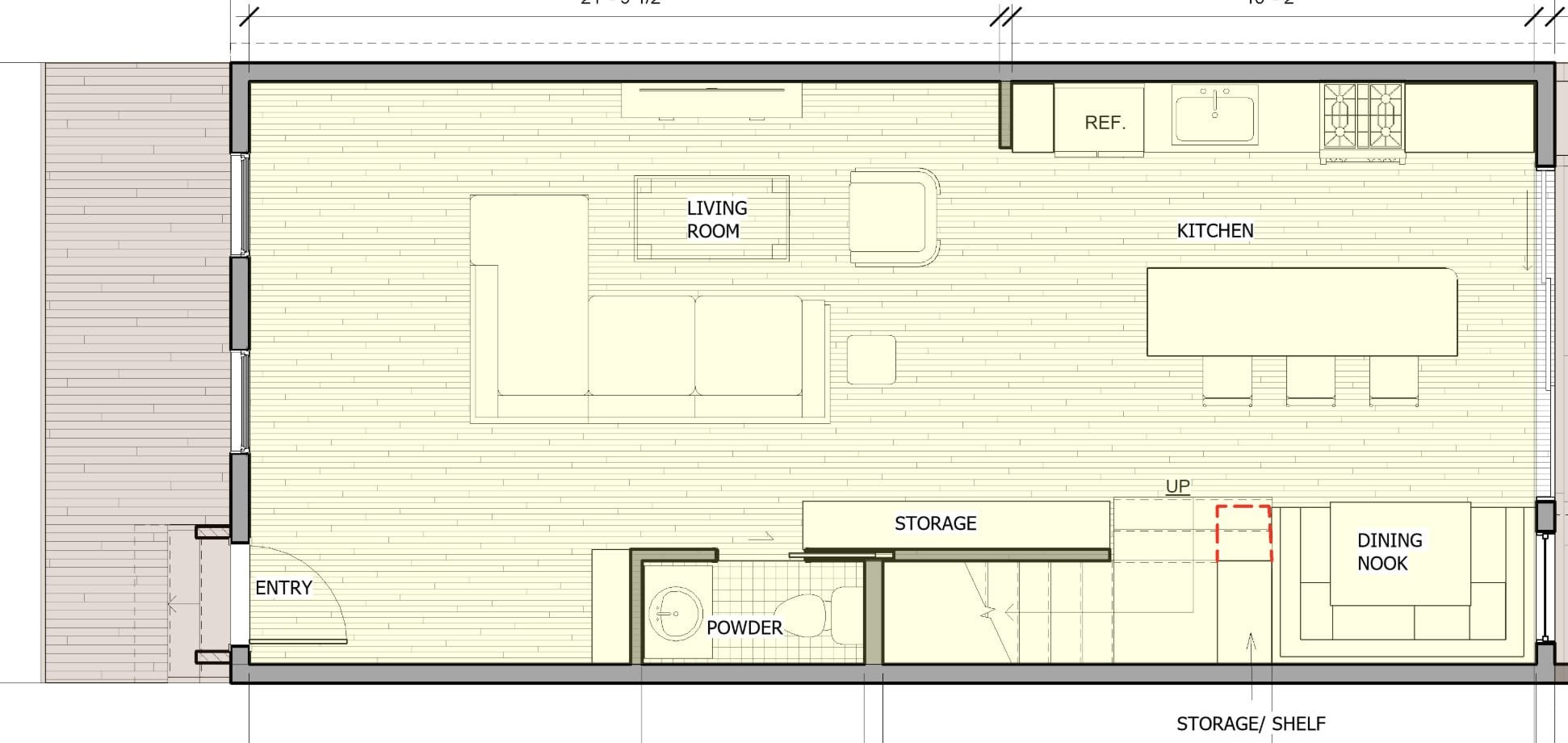 A 25' x 60' footprint makes for a home that's just under 3k sf of livable area between the first and second floor (not including the 1-car garage).