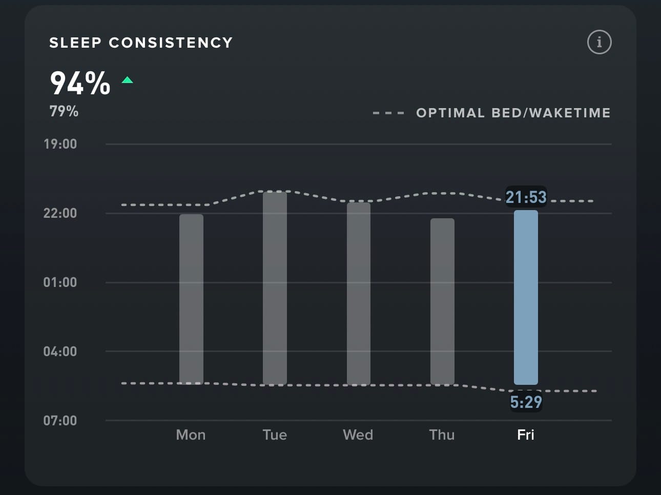 I'm getting restorative (Deep & REM) sleep: ~35% of my sleep is deep, which is slightly off the recommended 40%.