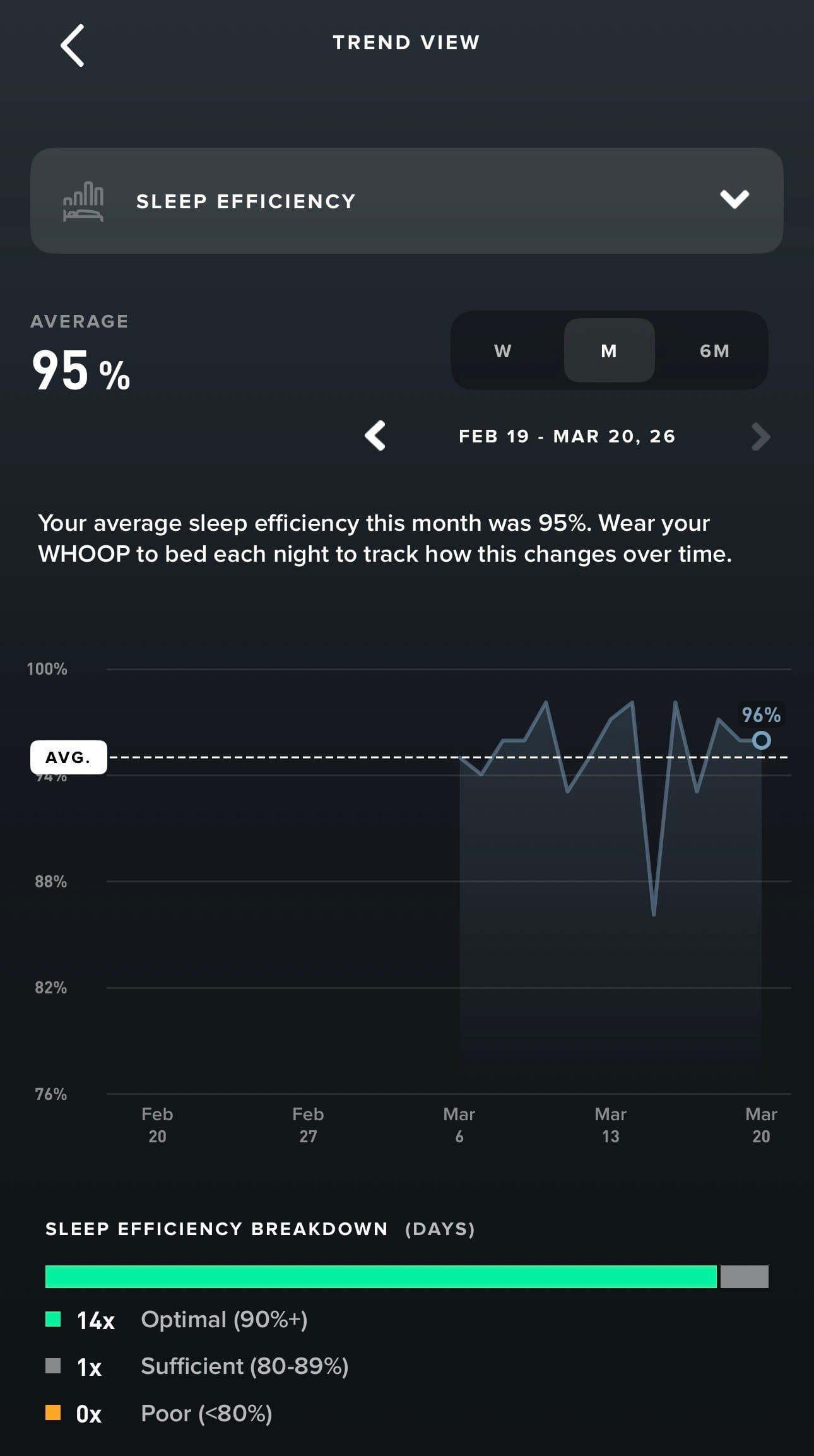 Dia and I got Whoop bands earlier this month, and it turns out my sleep is pretty good.