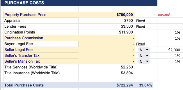The purchase price is $700,000 ea. After closing costs, prepaids, and fees, we'll be all in for $723,000 ea.