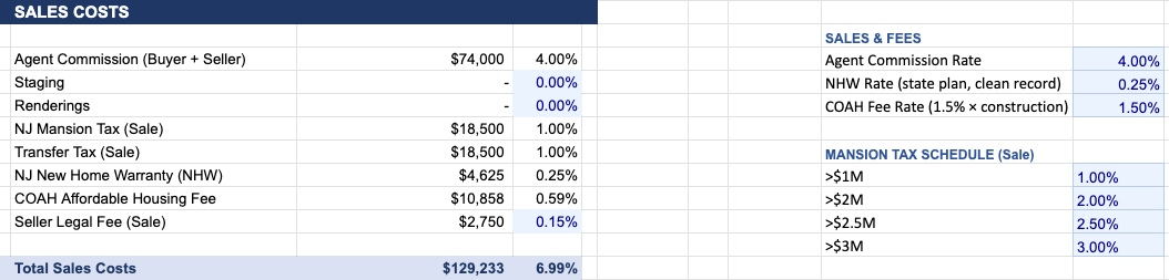 Between commissions, closing costs & associated fees, we'll spend just under $130K on the sale. I removed staging and rendering costs because I don't expect us to go to market, and an agent will procure renderings on our behalf.